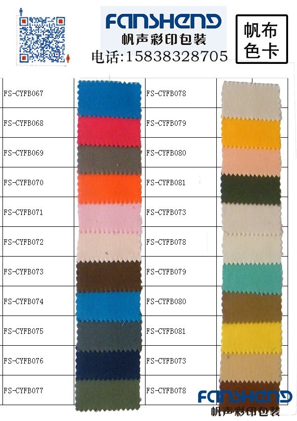 帆布袋材質(zhì)帆布規(guī)格12安帆布色卡
